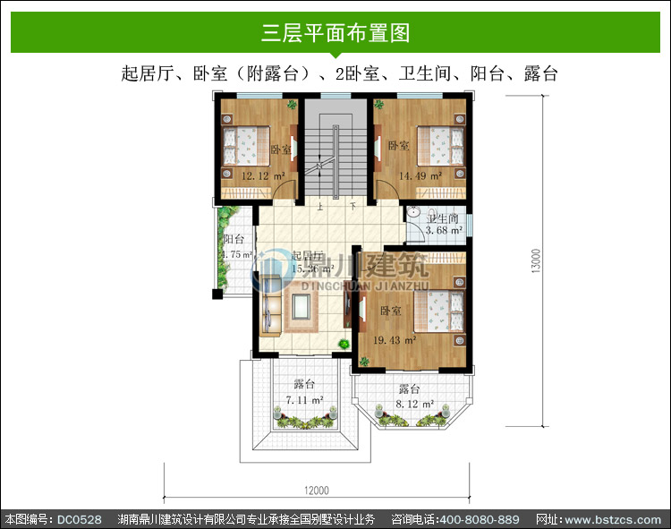 三層帶露臺農村自建房別墅設計圖紙_農村三層房屋設計,鼎川別墅