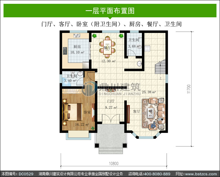 | 一 層: | 門廳、客廳、臥室(附衛生間)、廚房、餐廳、衛生間 | |||