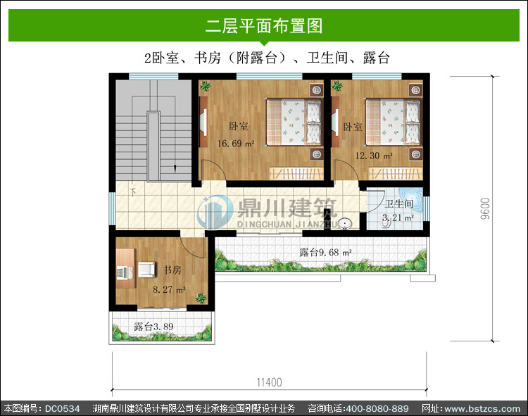 | 二 層: | 2臥室、書房(附露臺)、衛生間、露臺 | |||