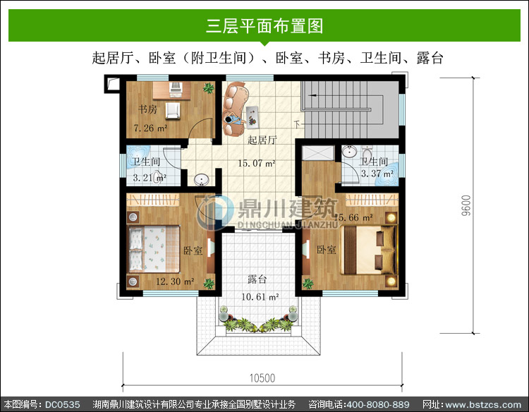 | 三 層: | 起居廳、臥室(附衛生間)、臥室、書房、衛生間、露臺 | |||