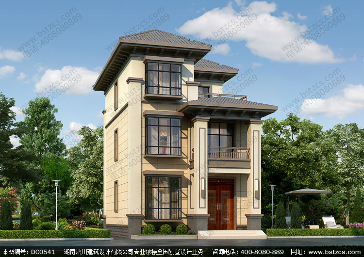 三層帶露臺中式小戶型別墅設計圖紙_農村三層別墅圖紙,鼎川建筑