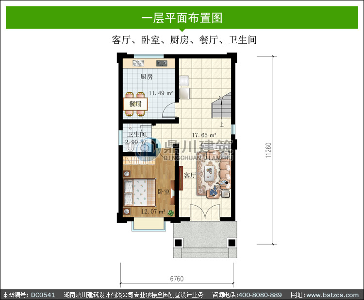 | 一 層: | 客廳、臥室、廚房、餐廳、衛生間 | |||