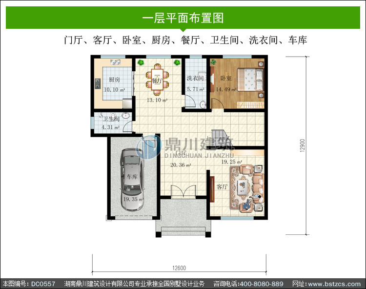 | 一 層: | 門廳、客廳、臥室、廚房、餐廳、衛生間、洗衣間、車庫 | |||