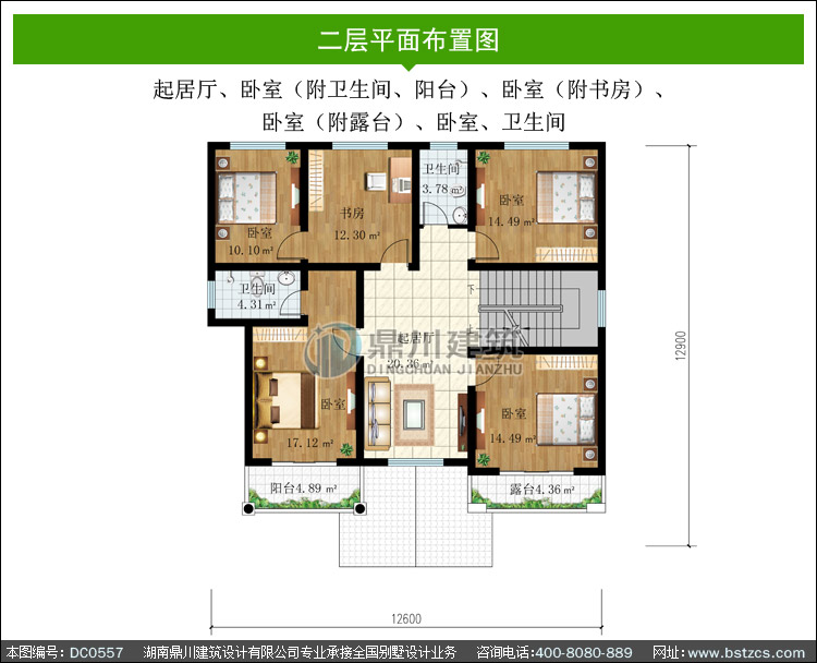| 二 層: | 起居廳、臥室(附衛生間、陽臺)、臥室(附書房)、臥室(附露臺)、臥 室、衛生間 | |||