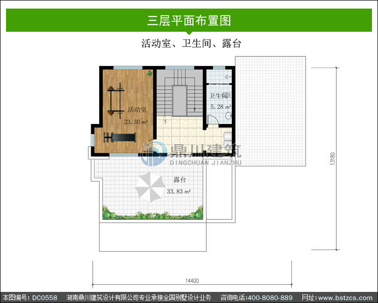 | 三 層: | 活動(dòng)室、衛(wèi)生間、露臺(tái) | |||