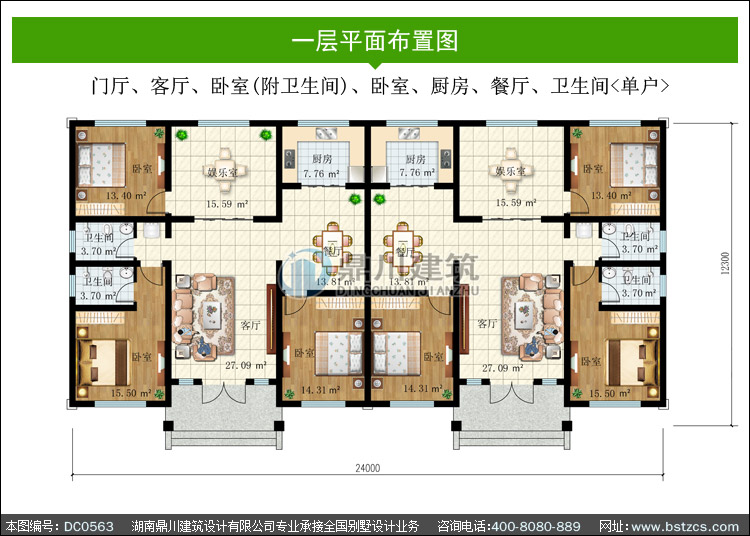 農(nóng)村雙拼一層自建別墅設(shè)計(jì)圖紙_農(nóng)村一層平房設(shè)計(jì)圖,鼎川建筑
