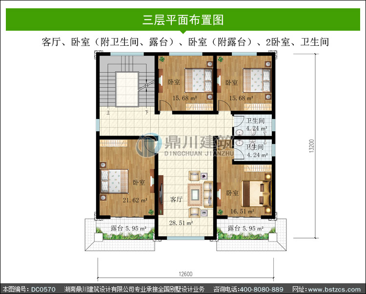 | 三 層: | 客廳、臥室(附衛生間、露臺)、臥室(附露臺)、2臥室、衛生間 | |||