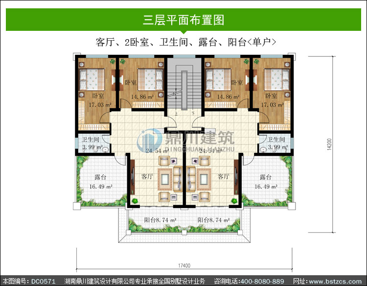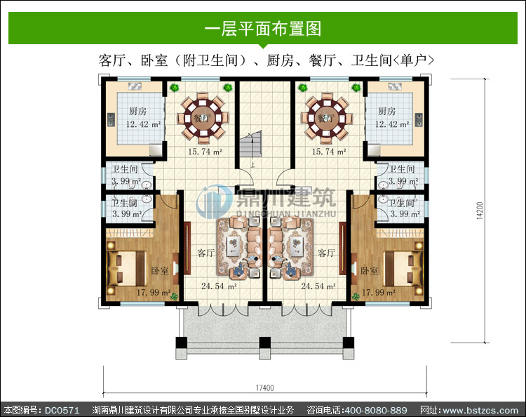 三層實用型雙拼別墅效果圖及施工圖_鼎川建筑,鼎川別墅圖紙