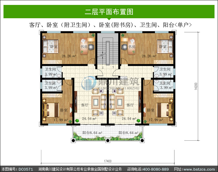 | 二 層: | 客廳、臥室(附衛生間)、臥室(附書房)、衛生間、陽臺 | |||