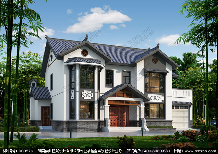 新中式二層帶露臺自建房別墅圖紙_農村兩層別墅設計,鼎川建筑