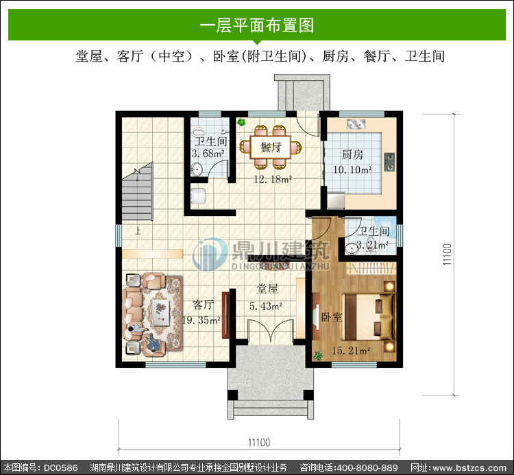 | 一 層: | 堂屋、客廳(中空)、臥室(附衛(wèi)生間)、廚房、餐廳、衛(wèi)生間 | |||