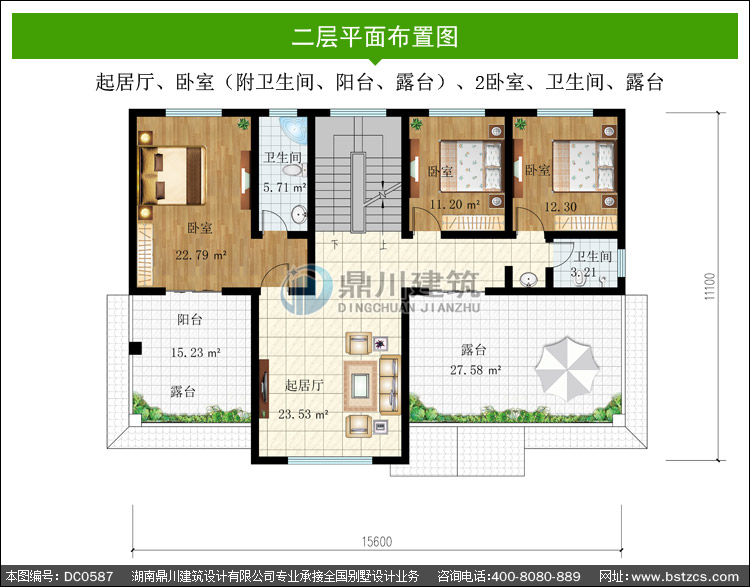| 二 層: | 起居廳、臥室(附衛(wèi)生間、陽臺、露臺)、2臥室、衛(wèi)生間、露臺 | |||
