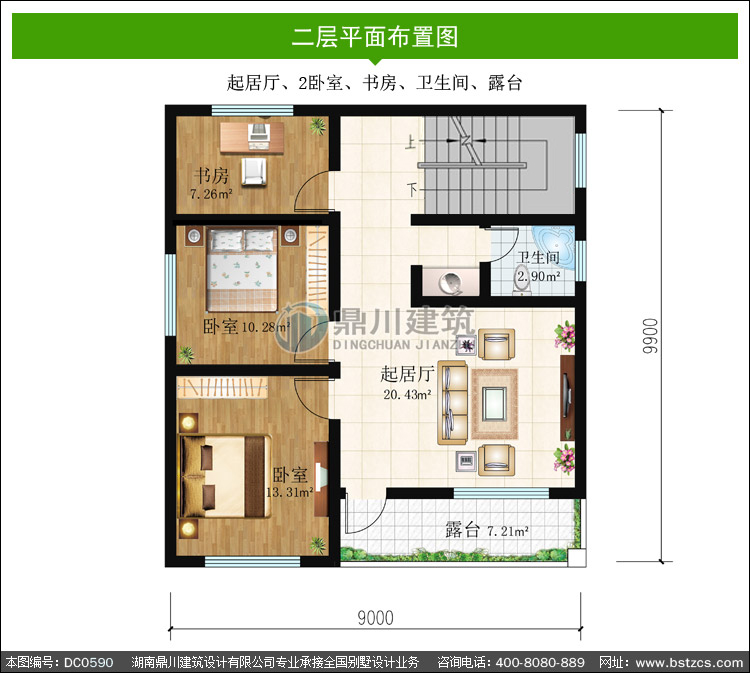 | 二 層: | 起居廳、2臥室、書(shū)房、衛(wèi)生間、露臺(tái) | |||