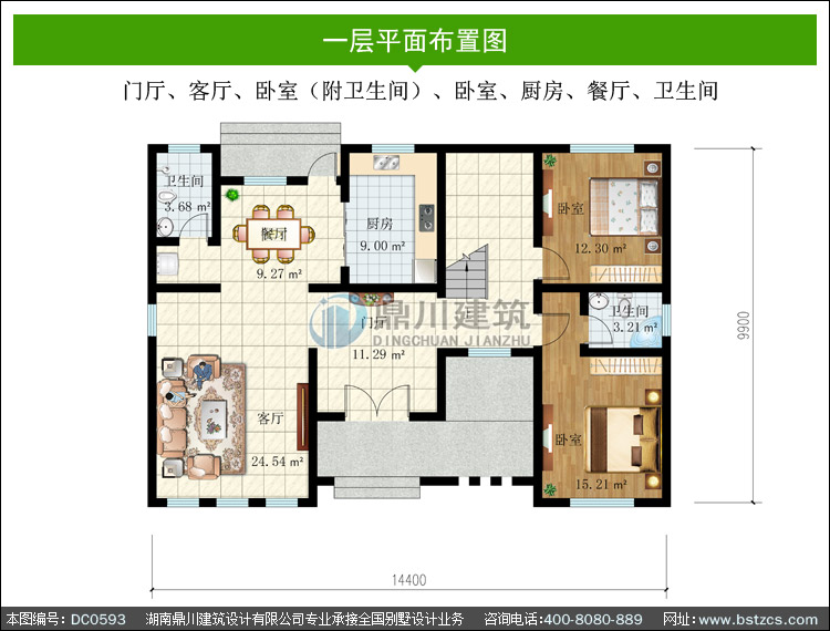 | 一 層: | 門廳、客廳、臥室(附衛生間)、臥室、廚房、餐廳、衛生間 | |||