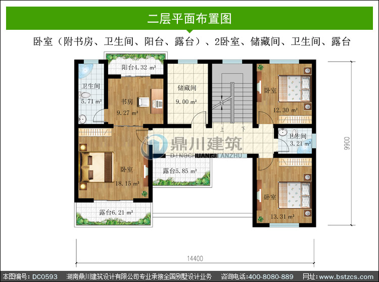 | 二 層: | 臥室(附書房、衛生間、陽臺、露臺)、2臥室、儲藏間、衛生間、露臺 | |||