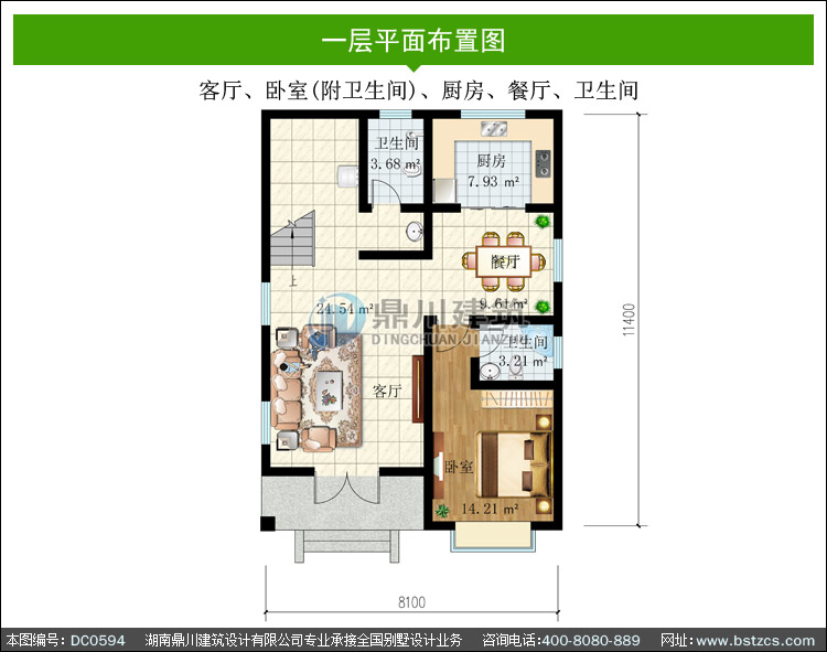 | 一 層: | 客廳、臥室(附衛生間)、廚房、餐廳、衛生間 | |||