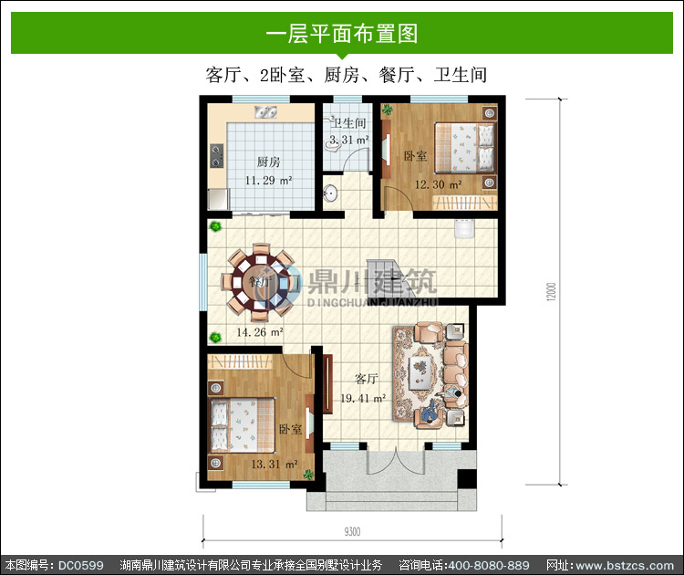 | 一 層: | 客廳、2臥室、廚房、餐廳、衛生間 | |||