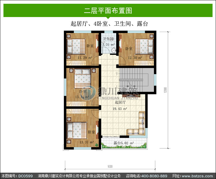 | 二 層: | 起居廳、4臥室、衛生間、露臺 | |||