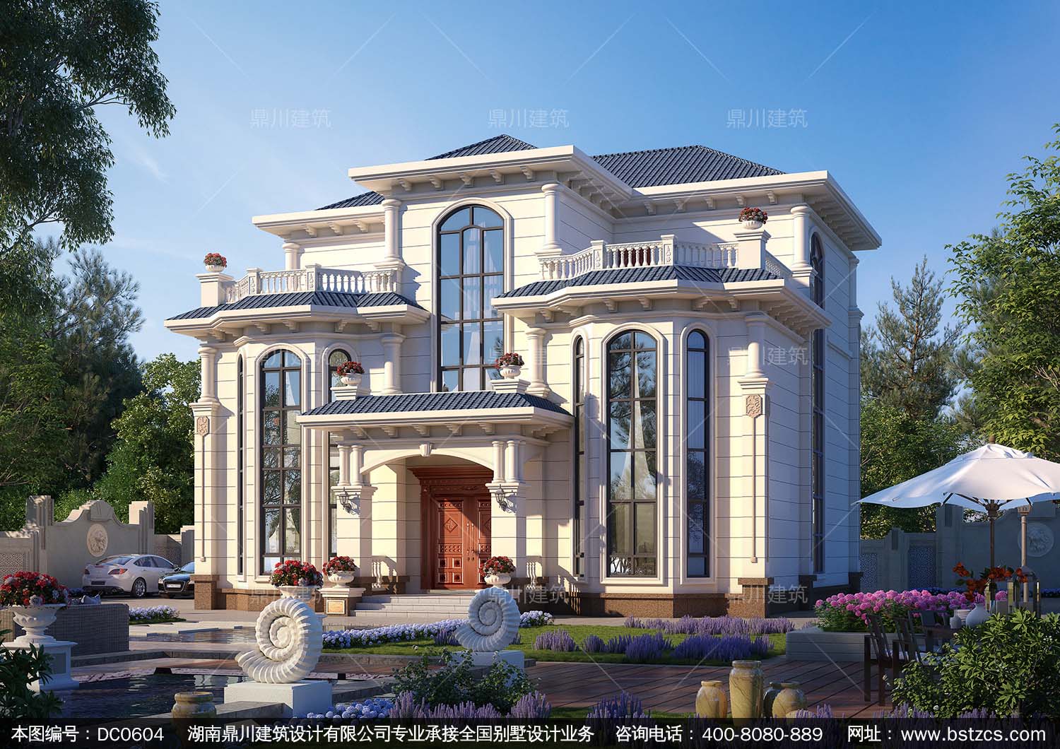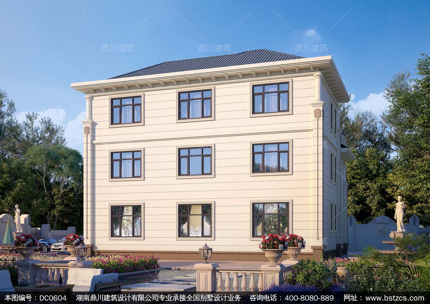 歐式三層帶露臺豪華別墅設計圖紙及外觀效果圖_農村三層自建房子設計圖,鼎川建筑