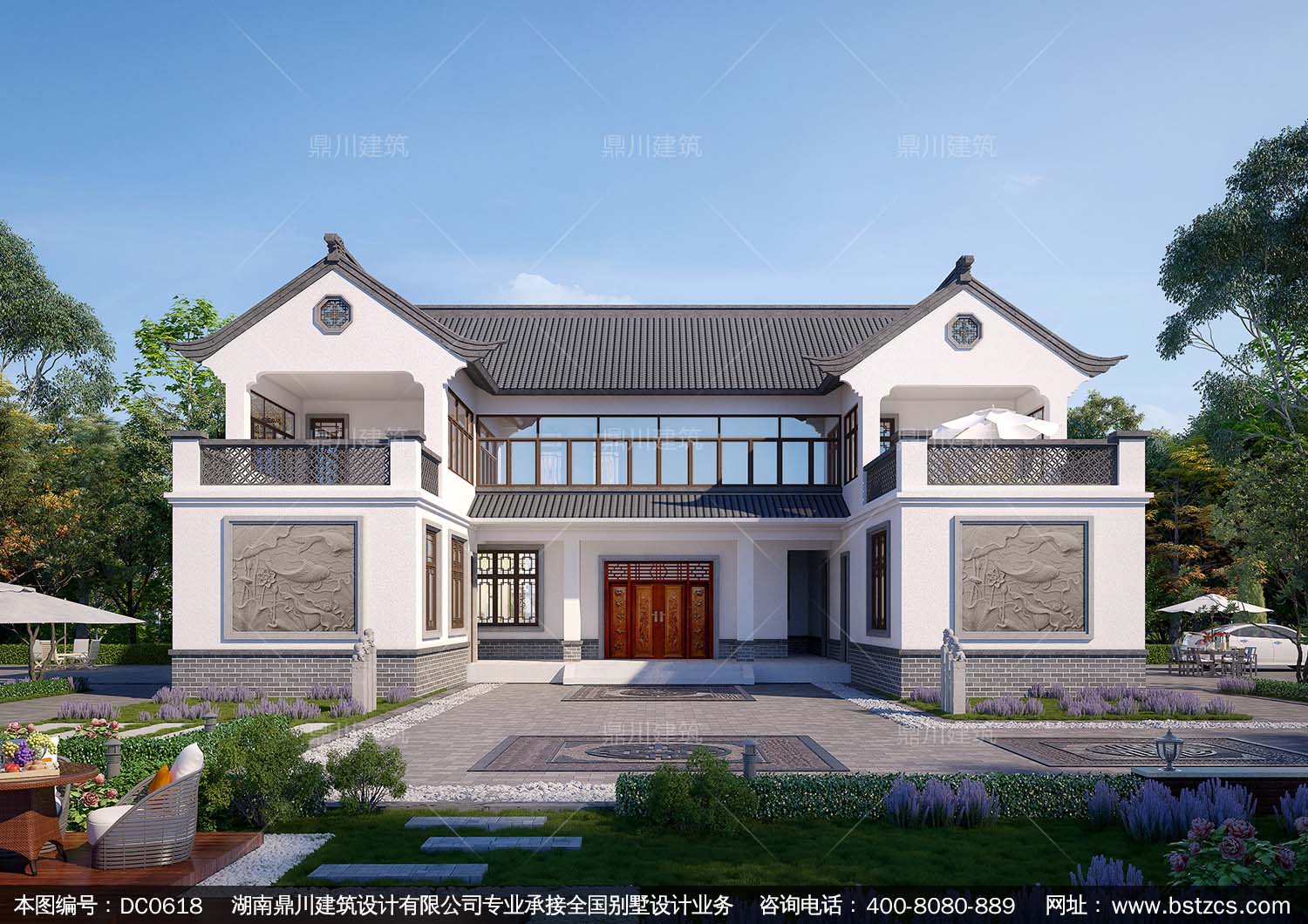 新中式二層帶露臺自建房別墅圖紙_農村兩層別墅設計,鼎川建筑