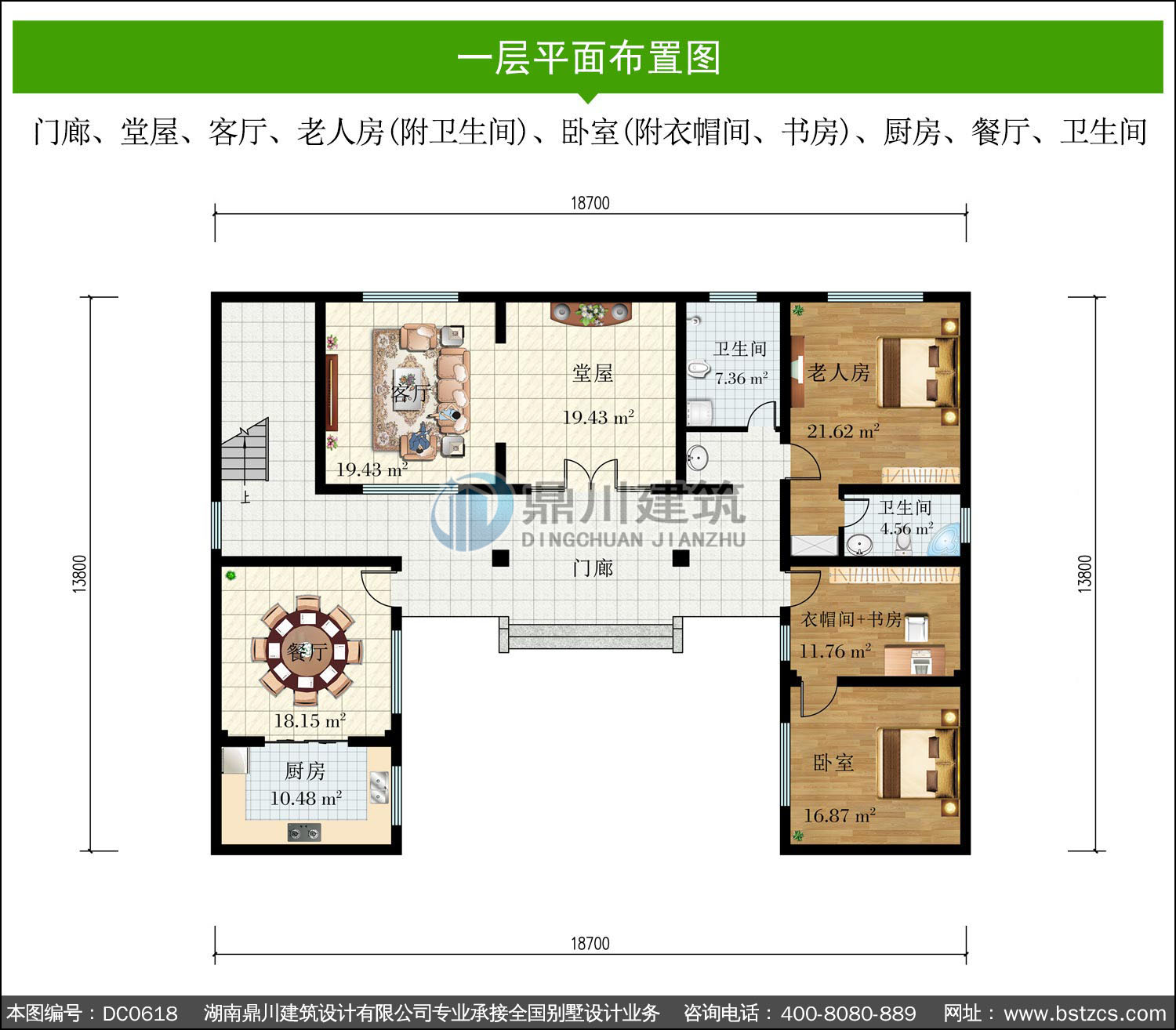 | 一 層: | 門廊、堂屋、客廳、老人房(附衛生間)、臥室(附衣帽間、書房)、廚房、餐廳、衛生間 | |||