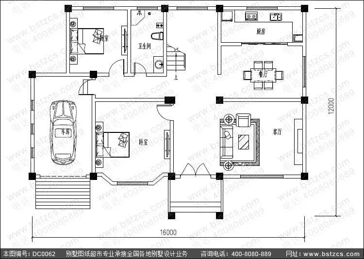 | 一 層: | 客廳、2臥室、廚房、餐廳、衛(wèi)生間、車庫 | |||
