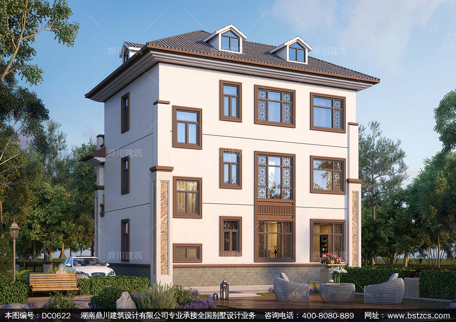 新中式三層帶露臺別墅設計圖紙及效果圖_農村三層別墅設計,鼎川