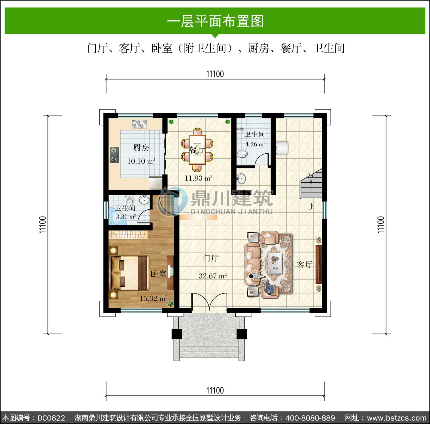 | 一 層: | 門廳、客廳、臥室(附衛生間)、廚房、餐廳、衛生間 | |||
