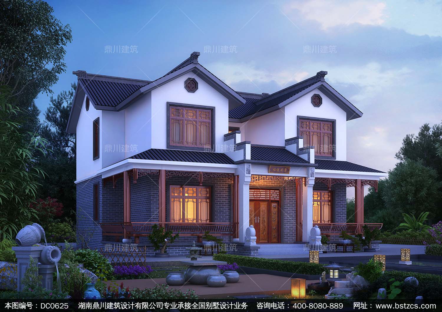 農村二層中式別墅圖紙施工圖及效果圖_自建房屋設計圖紙,鼎川建筑