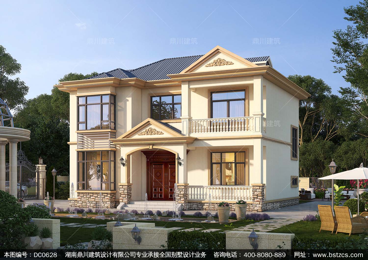 歐式二層帶陽臺小別墅設計效果圖及施工圖_農村兩層自建房別墅圖紙,鼎川建筑