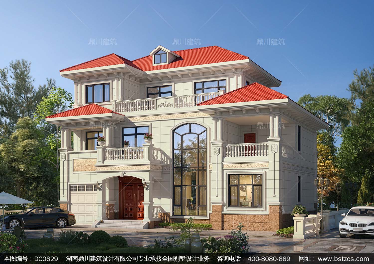 歐式三層帶車庫露臺農村別墅設計圖紙_三層別墅設計,鼎川建筑
