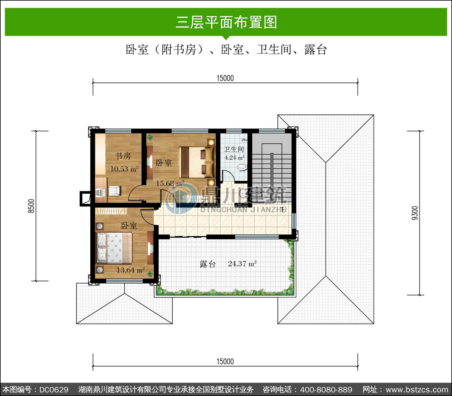 | 三 層: | 臥室(附書房)、臥室、衛生間、露臺 | |||