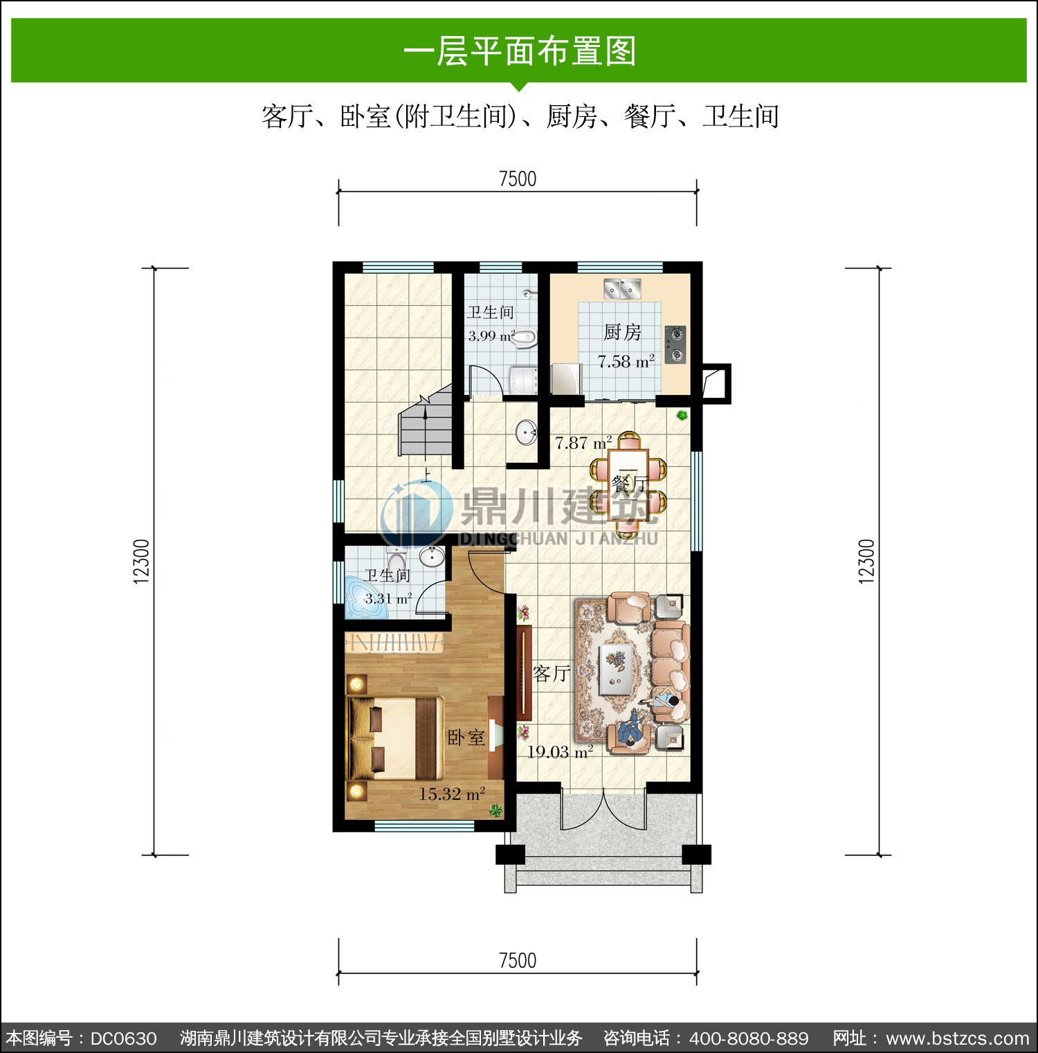 | 一 層: | 客廳、臥室(附衛生間)、廚房、餐廳、衛生間 | |||