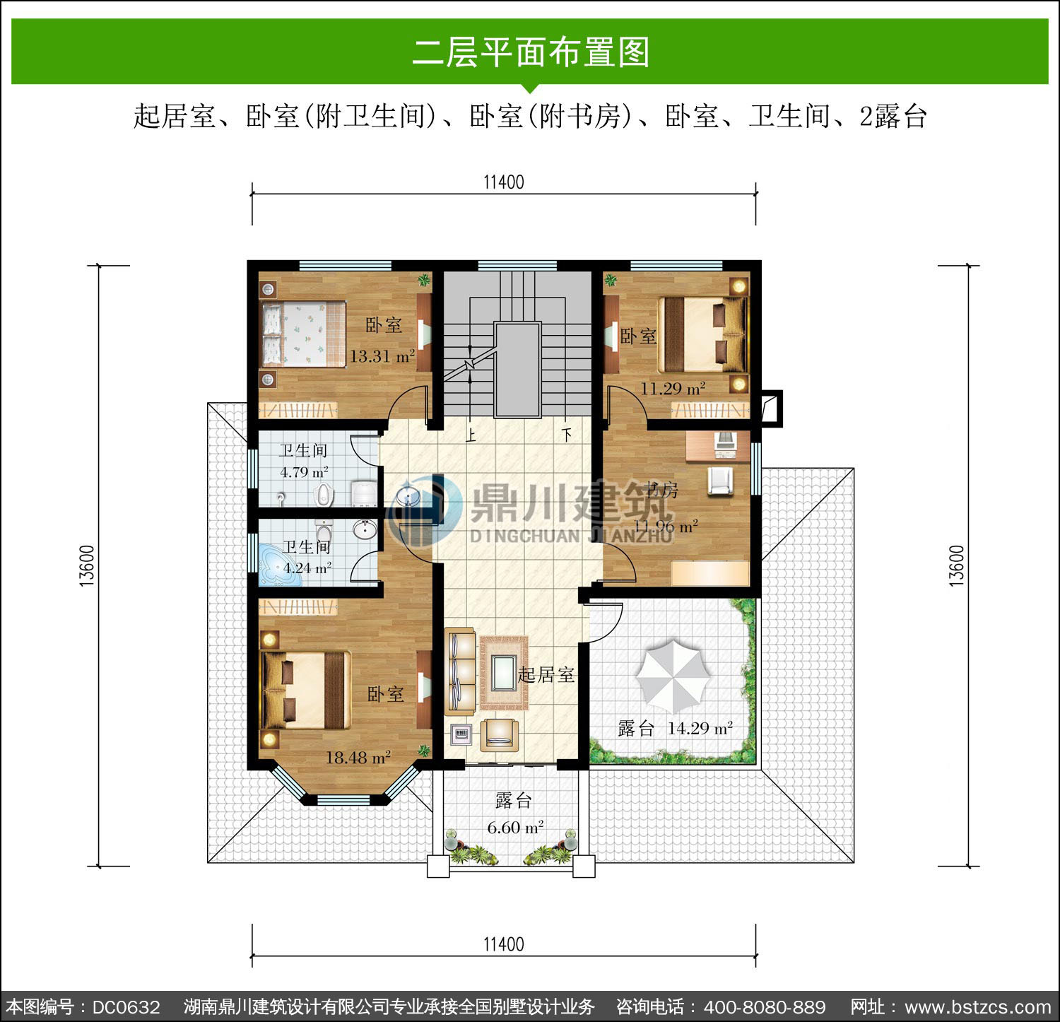 | 二 層: | 起居室、臥室(附衛(wèi)生間)、臥室(附書房)、臥室、衛(wèi)生間、2露臺 | |||