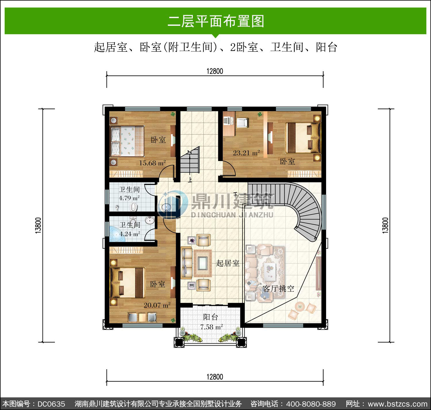 | 二 層: | 起居室、臥室(附衛生間)、2臥室、衛生間、陽臺 | |||