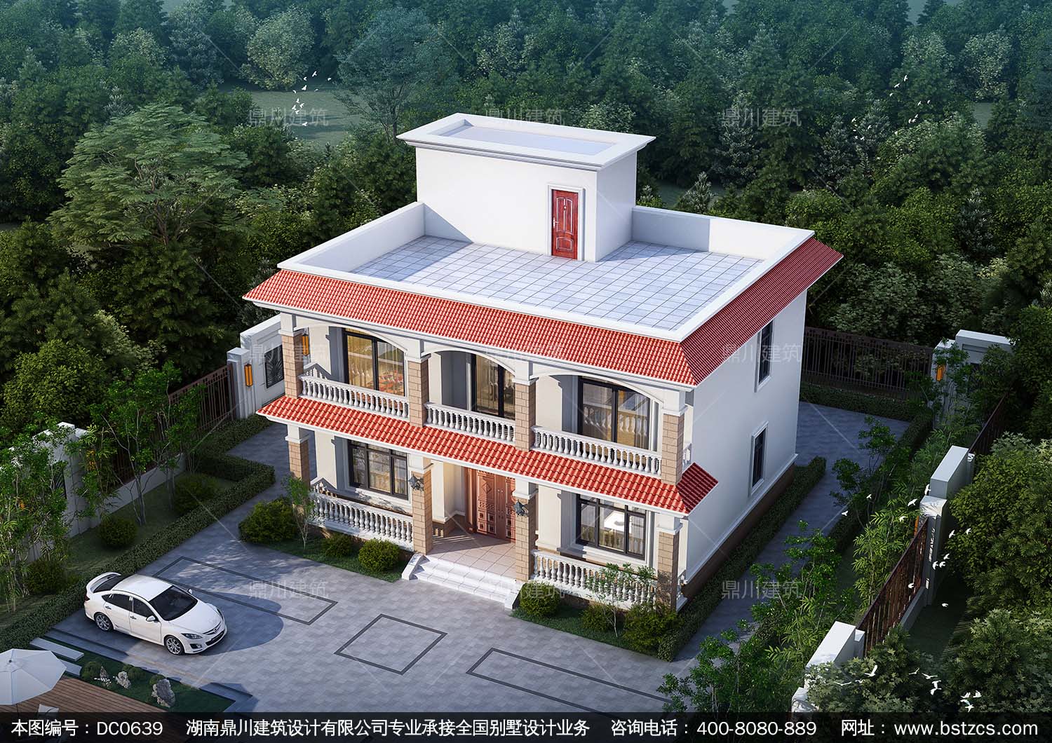 歐式二層帶陽臺自建別墅設計效果圖及施工圖_農村兩層平屋頂房子設計圖紙,鼎川建筑