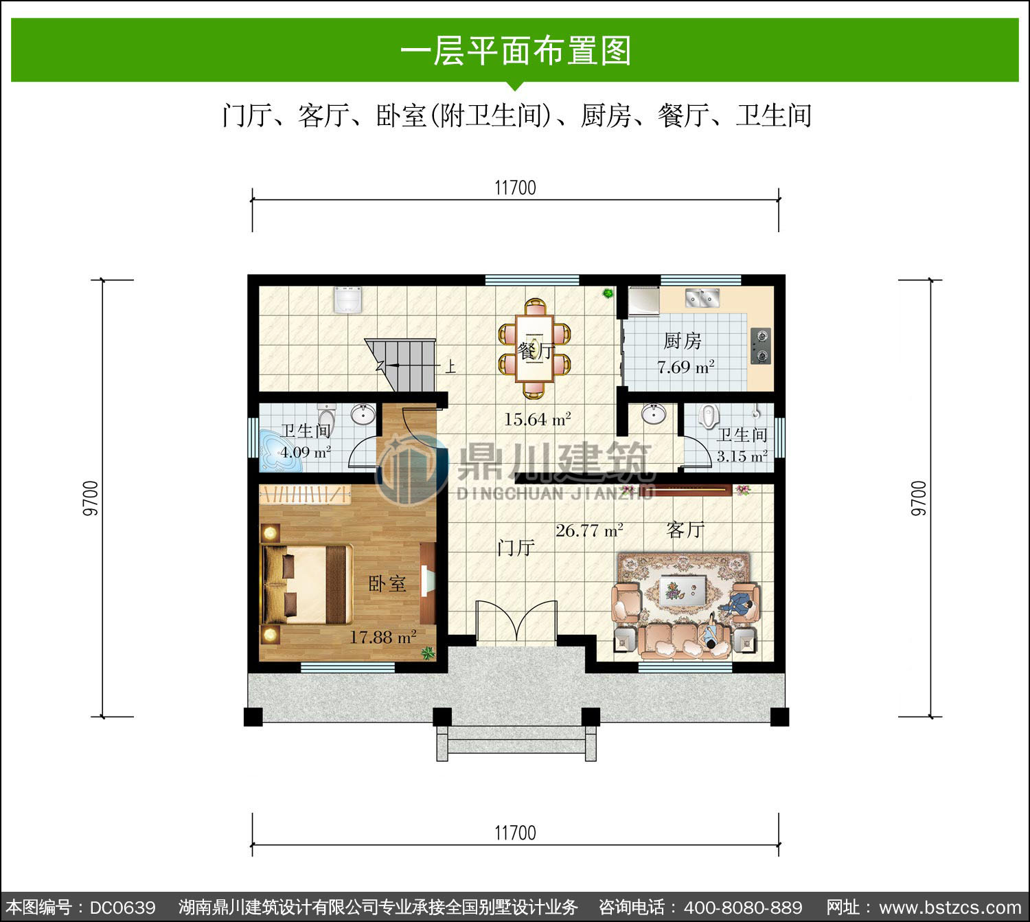 | 一 層: | 門廳、客廳、臥室(附衛生間)、廚房、餐廳、衛生間 | |||