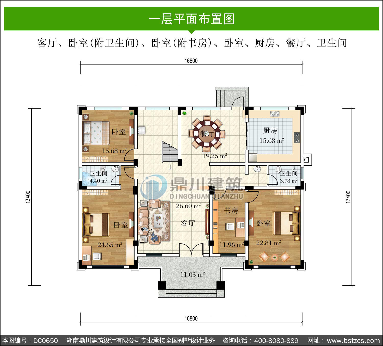 | 一 層: | 客廳、臥室(附衛(wèi)生間)、臥室(附書房)、臥室、廚房、餐廳、衛(wèi)生間 | |||