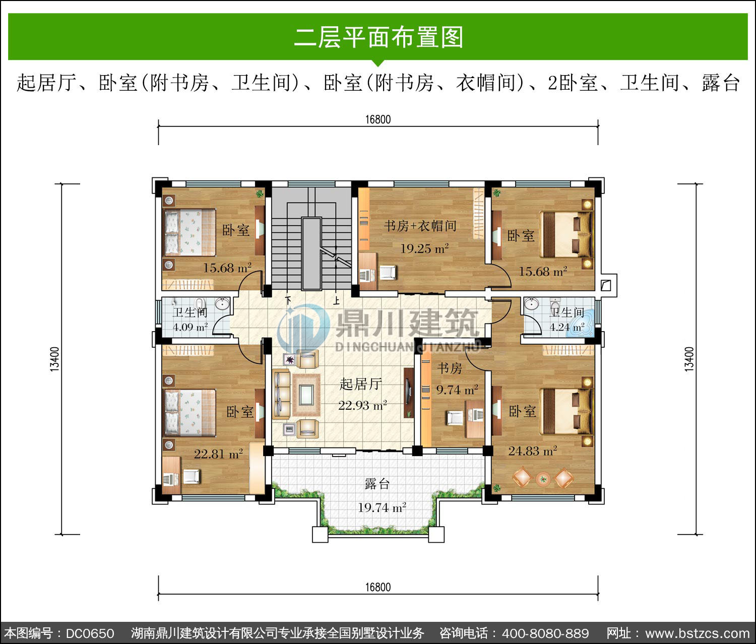 | 二 層: | 起居廳、臥室(附書房、衛(wèi)生間)、臥室(附書房、衣帽間)、2臥室、衛(wèi)生間、露臺 | |||