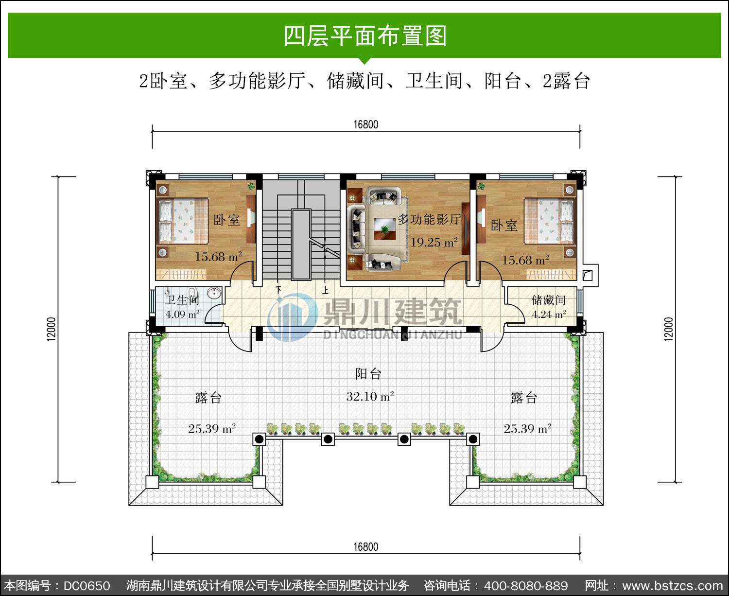 | 四 層: | 2臥室、多功能影廳、儲藏間、衛(wèi)生間、陽臺、2露臺 | |||