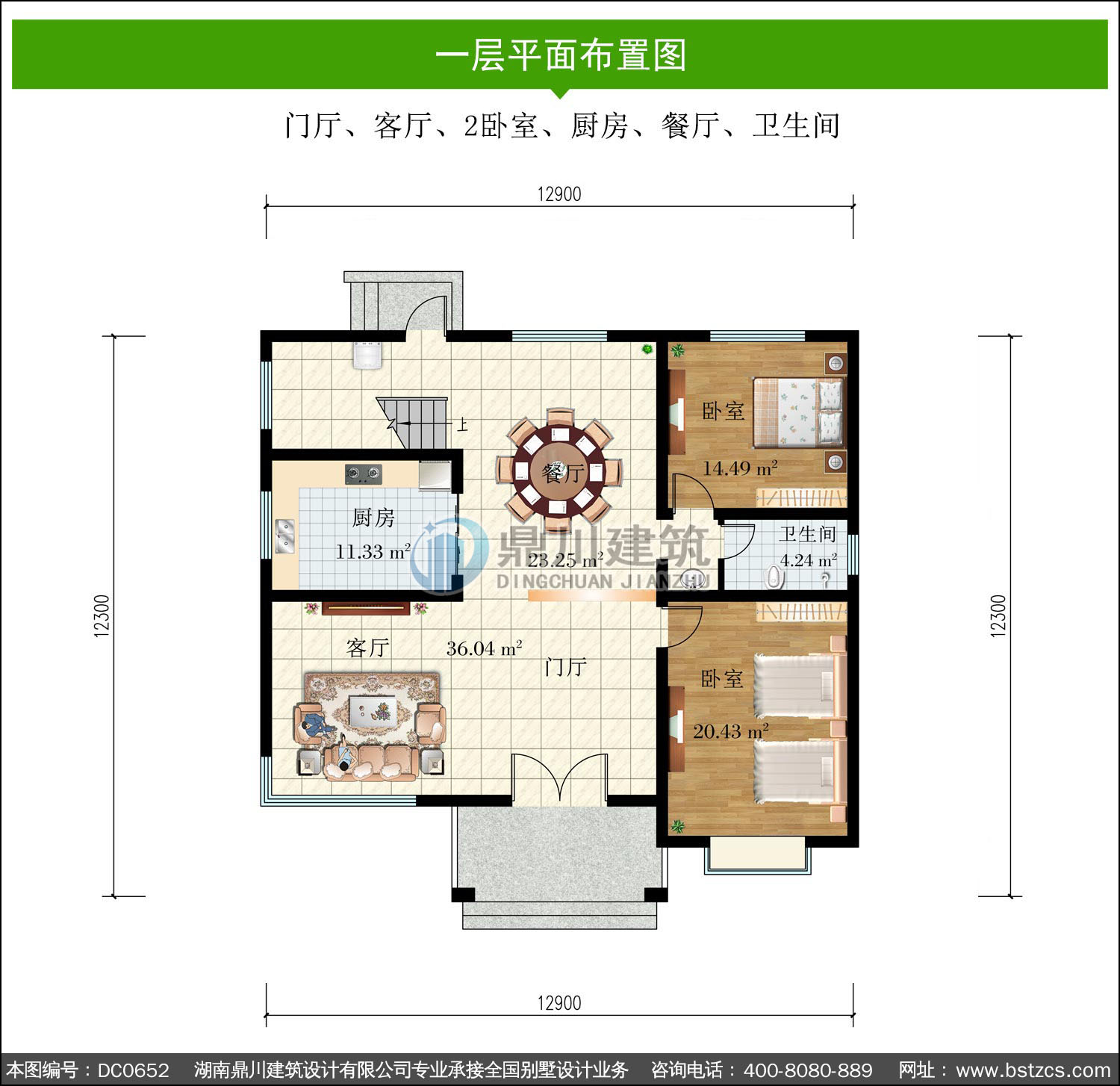 | 一 層: | 門廳、客廳、2臥室、廚房、餐廳、衛生間 | |||