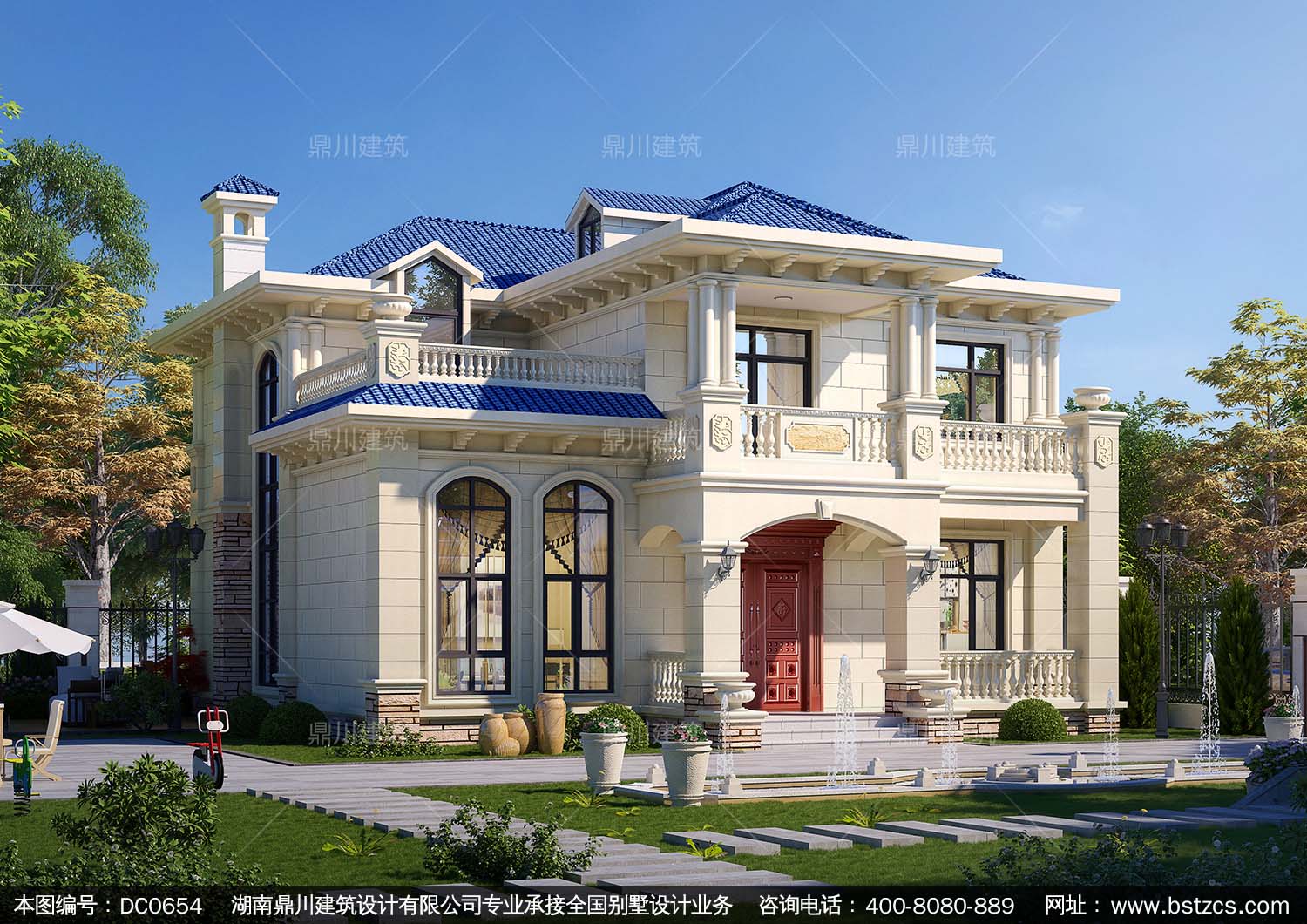 歐式二層帶露臺別墅效果圖及全套施工圖紙_新農(nóng)村兩層自建房設(shè)計,鼎川建筑