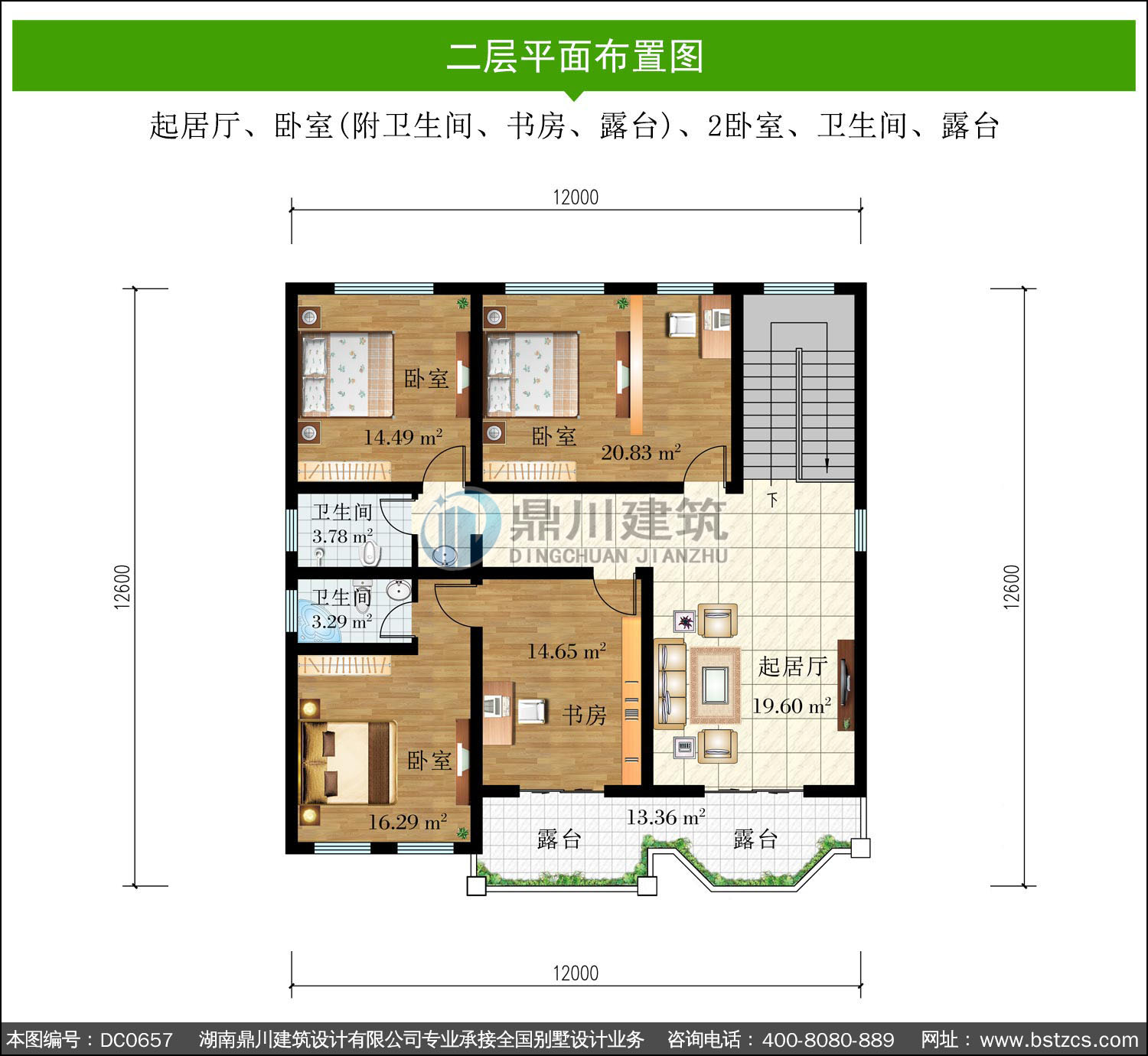 歐式二層帶露臺簡約農村小別墅全套施工圖紙及效果圖_鄉村兩層自建房設計圖紙,鼎川建筑