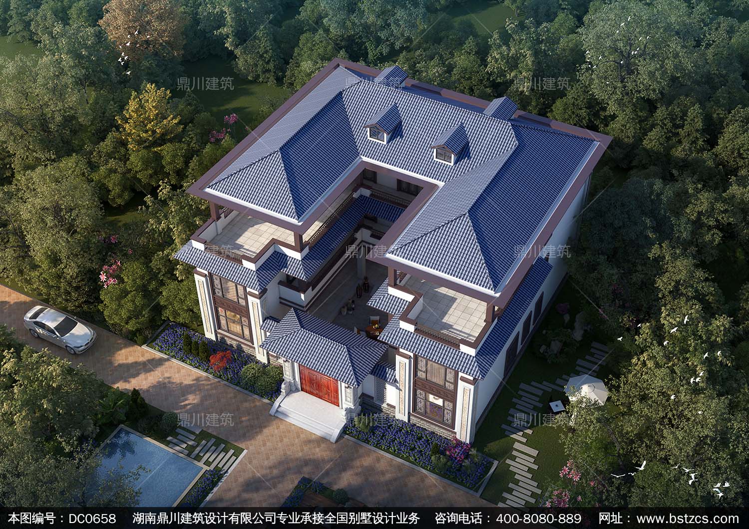 新中式三層帶露臺小別墅設計圖紙及效果圖_農村三層別墅設計,鼎