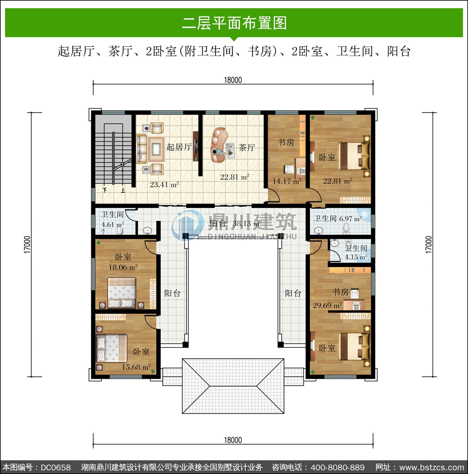 | 二 層: | 起居廳、茶廳、2臥室(附衛生間、書房)、2臥室、衛生間、陽臺 | |||