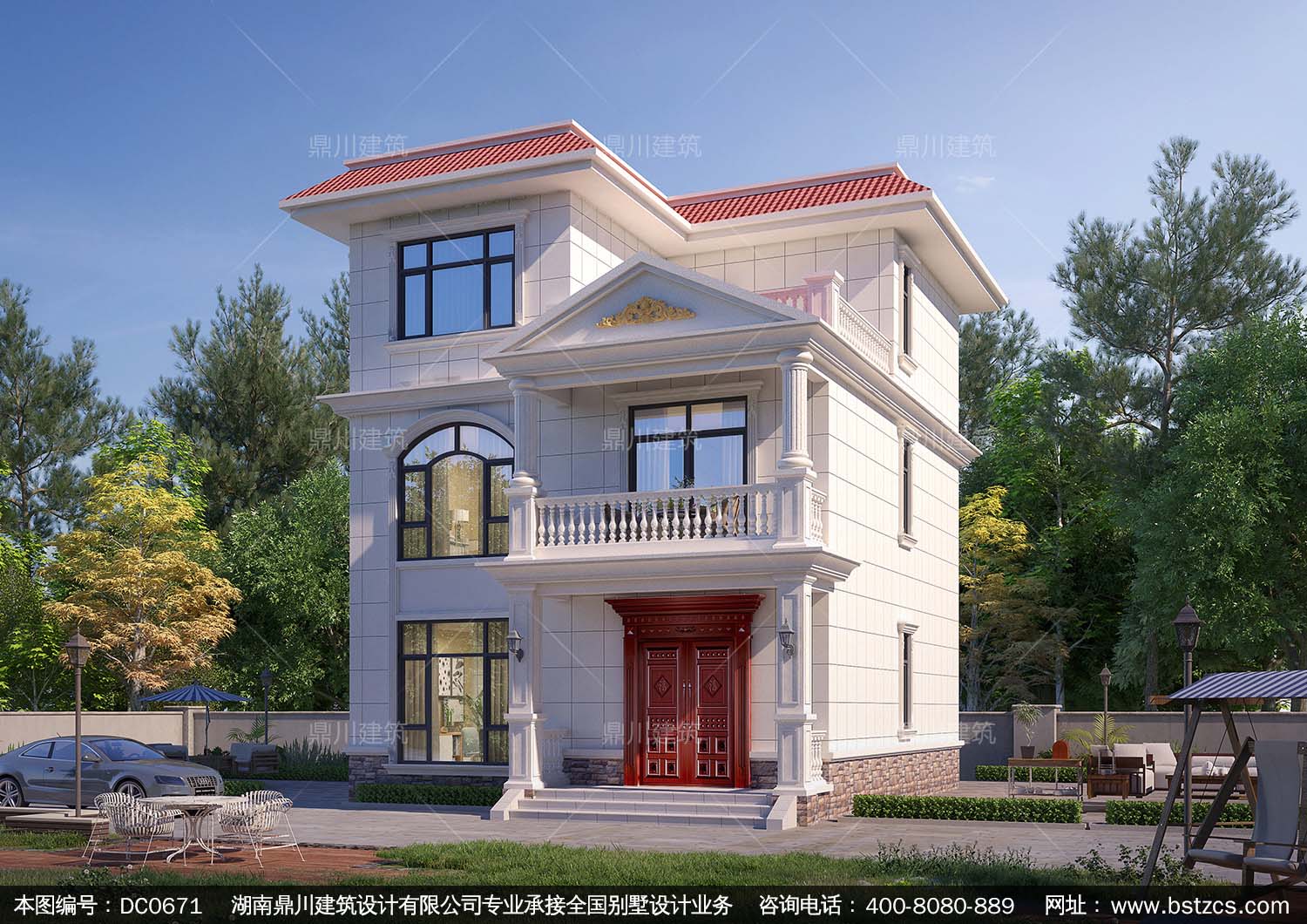 歐式三層帶露臺別墅效果圖及施工圖_農村實用小戶型自建房設計圖,鼎川建筑