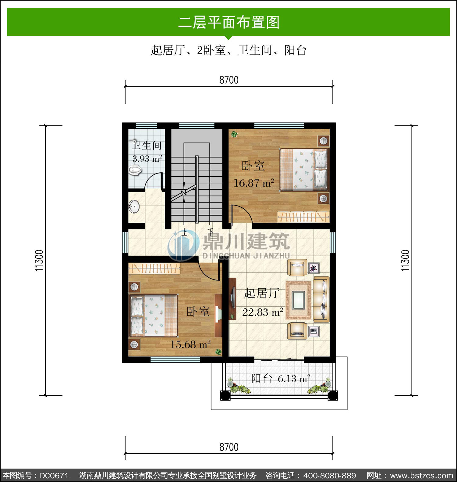 | 二 層: | 起居廳、2臥室、衛生間、陽臺 | |||
