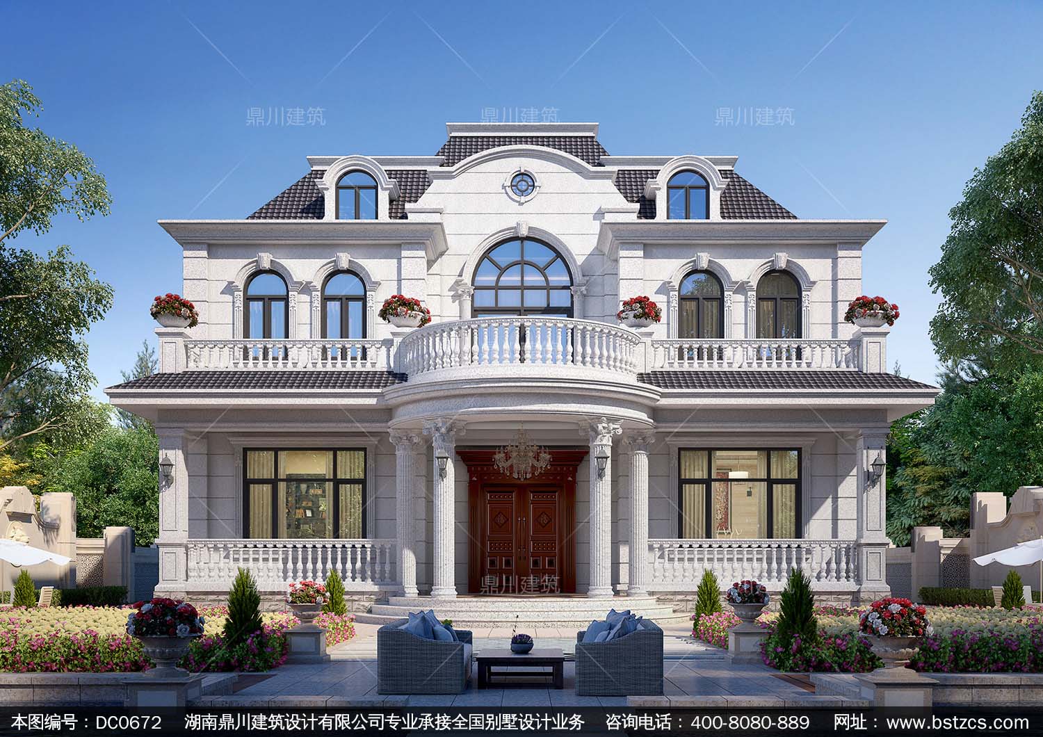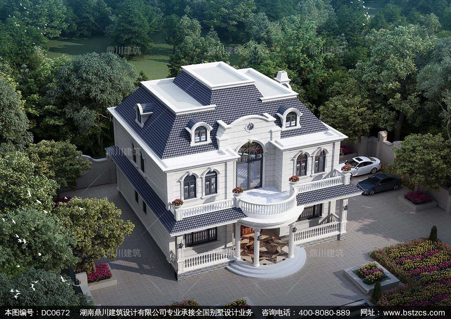 漂亮的豪華二層法式別墅設計效果圖及施工圖_新農村兩層自建別墅設計,鼎川建筑