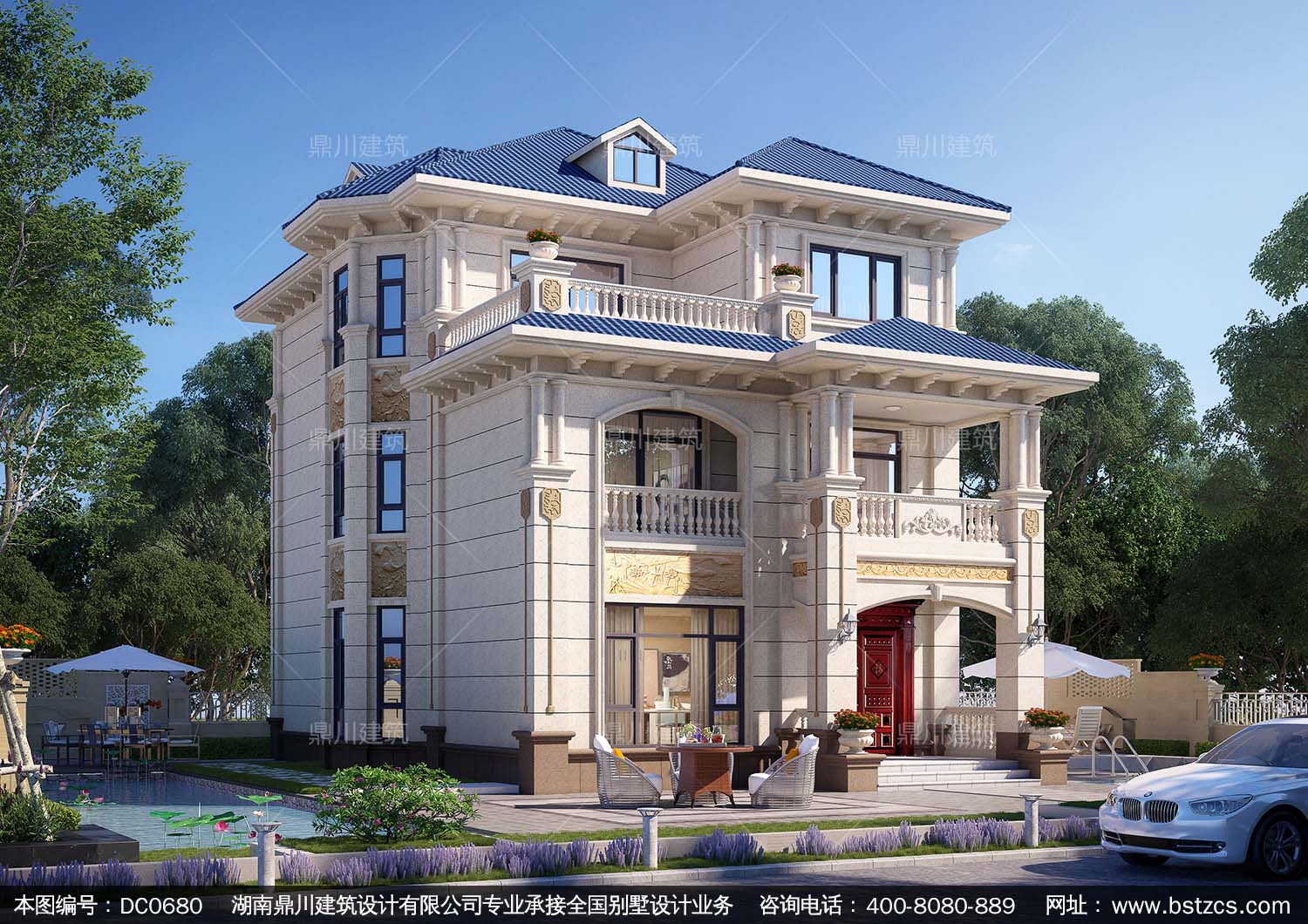 歐式三層帶露臺小別墅設計圖紙及效果圖_農村三層自建房屋設計,鼎川建筑