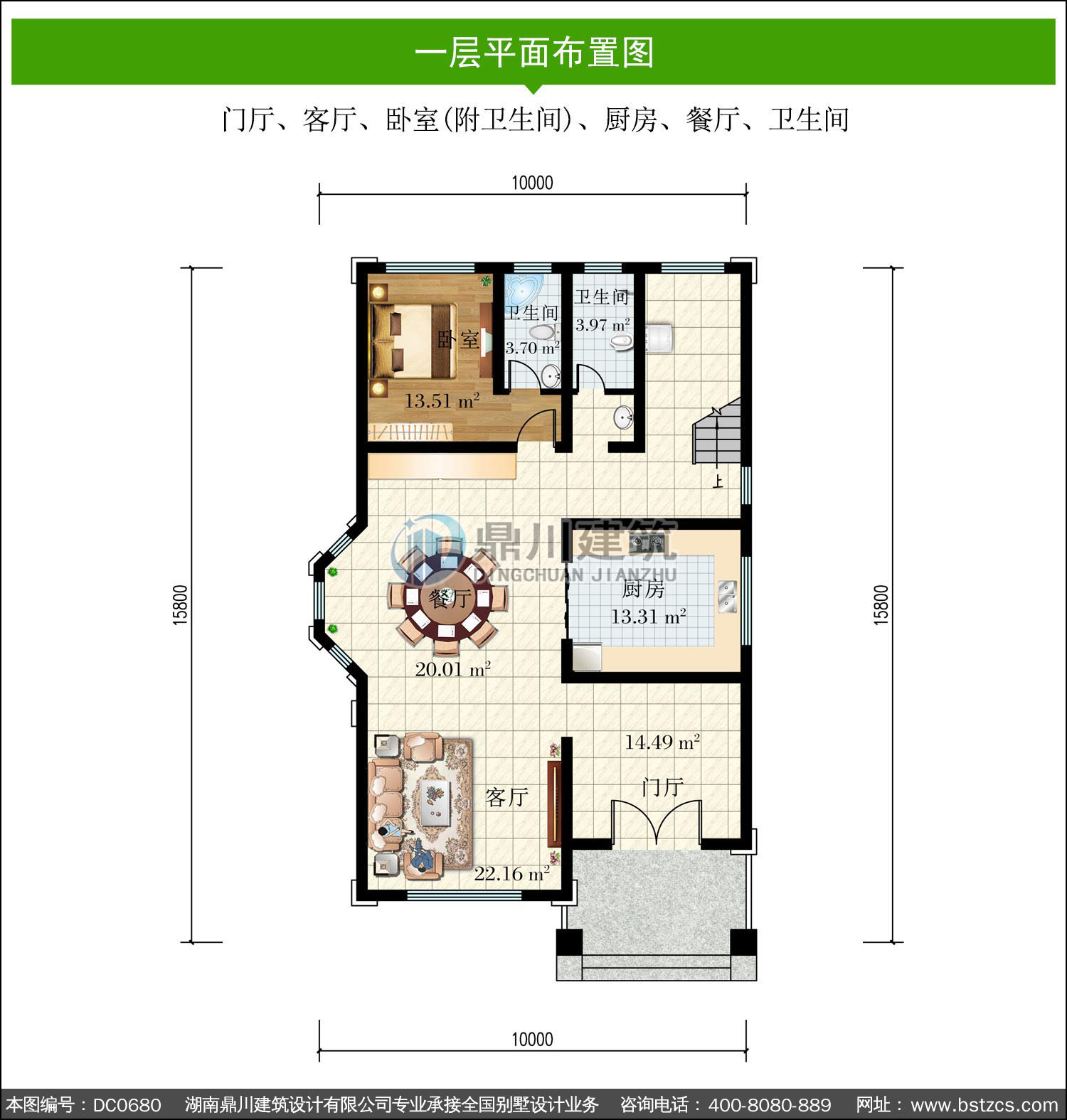 | 一 層: | 門廳、客廳、臥室(附衛(wèi)生間)、廚房、餐廳、衛(wèi)生間 | |||